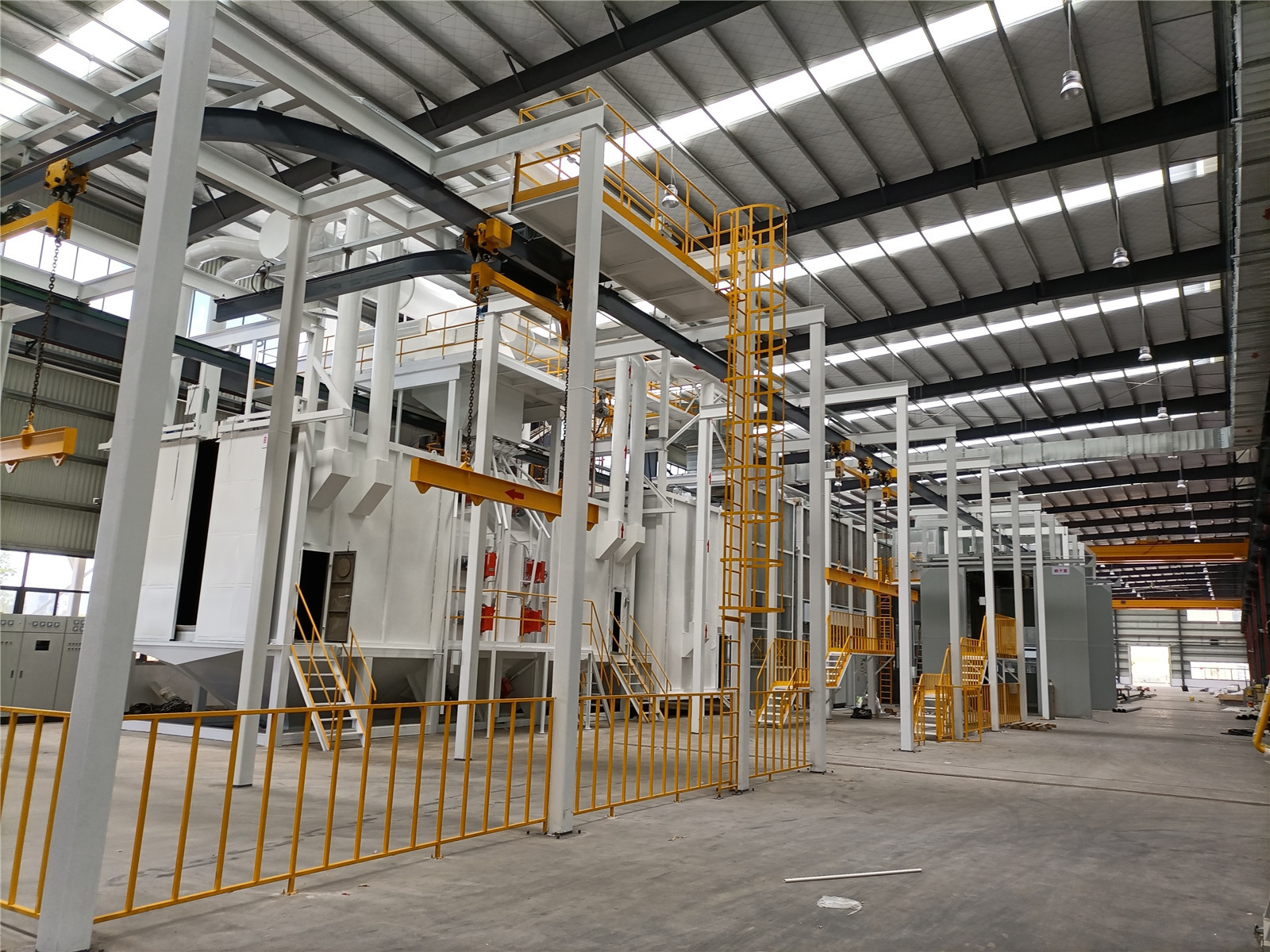 Sistem conveyor tanpa tenaga ini dirancang untuk pengolahan permukaan volume rendah dari benda kerja besar dan berat,dengan mobil translasi rangka baja yang kokoh dan ruang proses modular yang membimbing item melalui jalur yang mulus, alur kerja multi-tahap dari penggoresan dan pembersihan sampai pencelupan semprotan dan panggang, memastikan operasi yang tepat dan efisien dengan pemeliharaan minimal.
